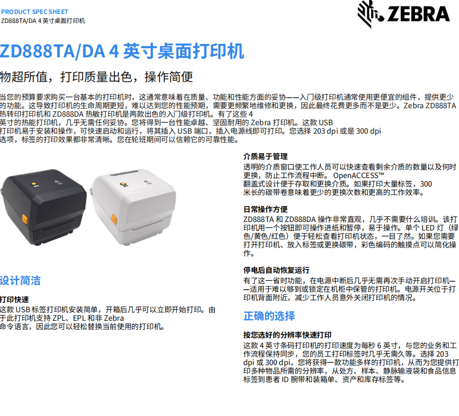 ZD888TA/DA 4 英寸桌面打印机